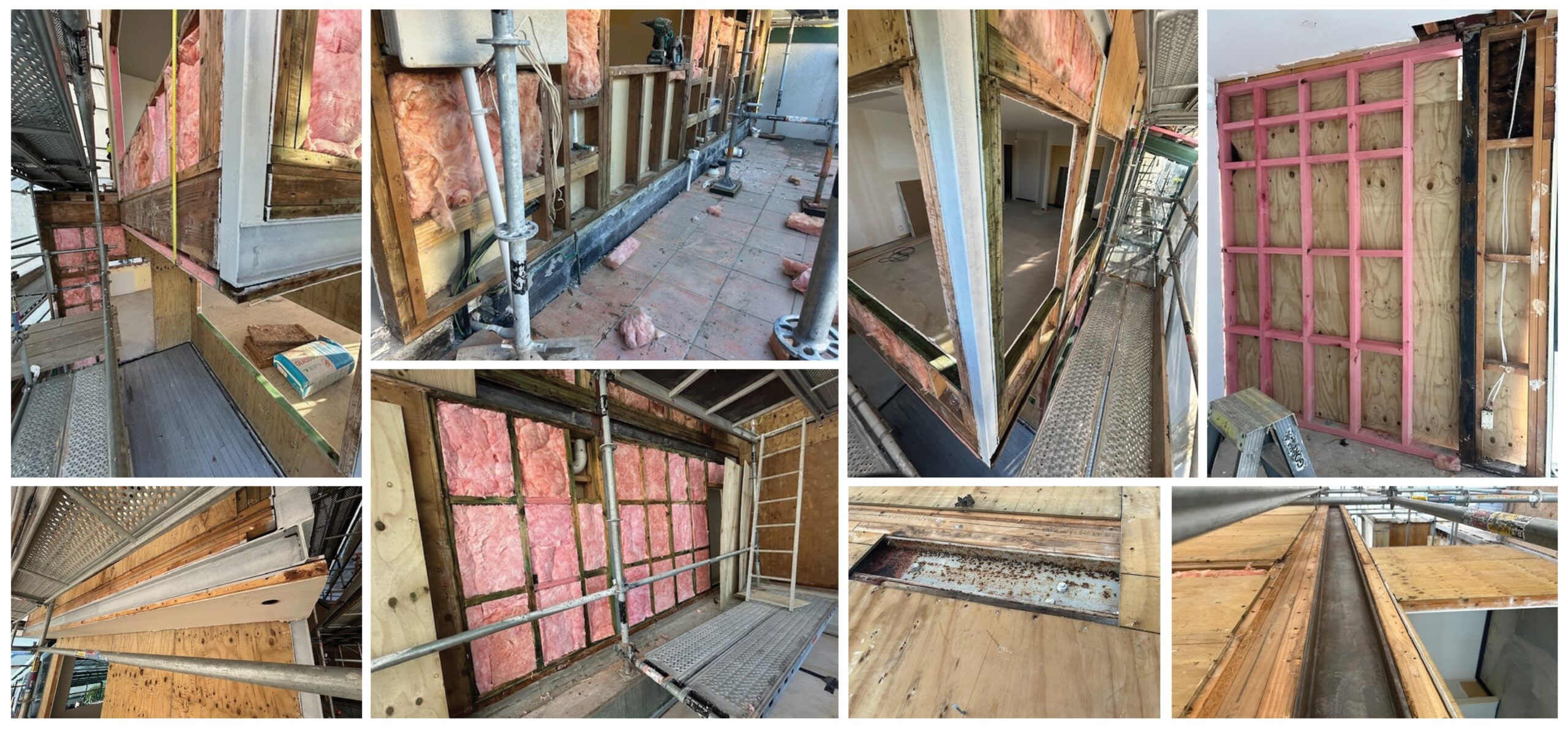 We began by removing the old cladding and all the windows, which took about two weeks because of the sheer scale of the house. Then once we got down to the plywood substrate, we identified where water had ingressed and deteriorated the structure. After replacing and treating all affected areas, we installed new windows throughout, reinstalled or renewed the ply, and replaced the old cladding with a beautiful new Resene Integra lightweight concrete cavity cladding system, accented with horizontal cedar cladding.